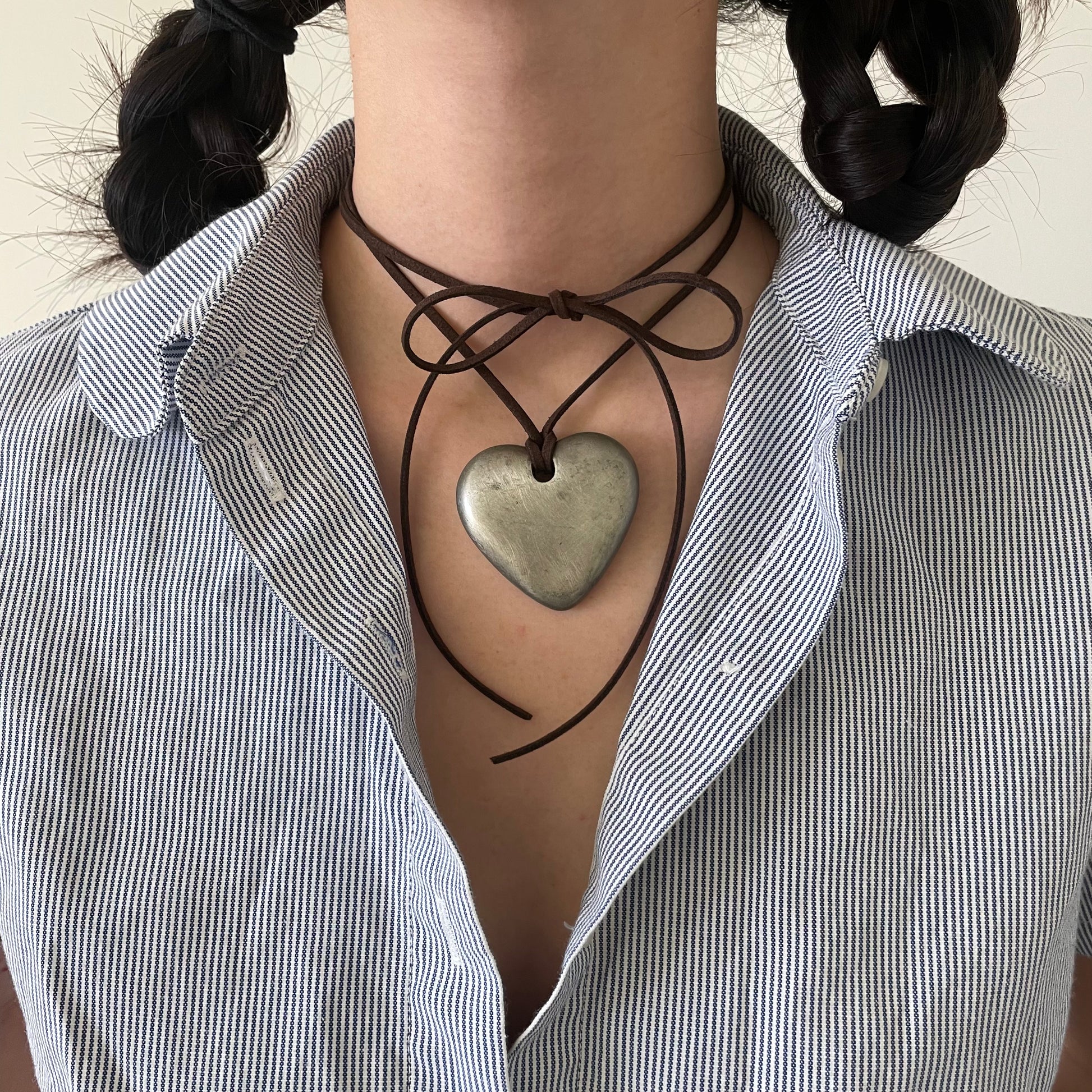 Necklace handmade with a 60 inches suede cord and anti silver plated heart